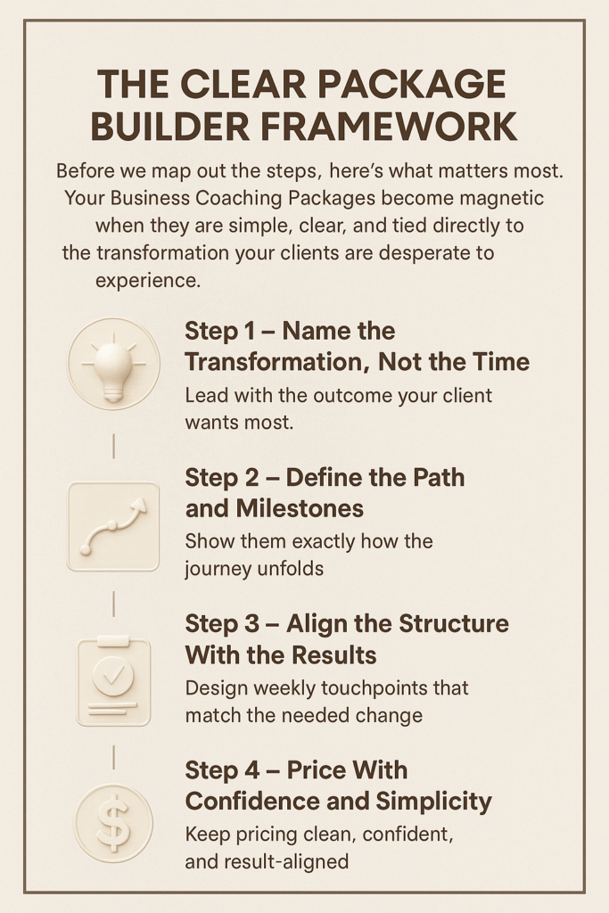 Your Business Coaching Packages become magnetic when they are simple, clear, and tied directly to the transformation your clients are desperate to experience.