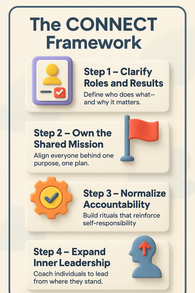 Here’s our 4-step CONNECT Framework that turns a disconnected team into a powerhouse:
