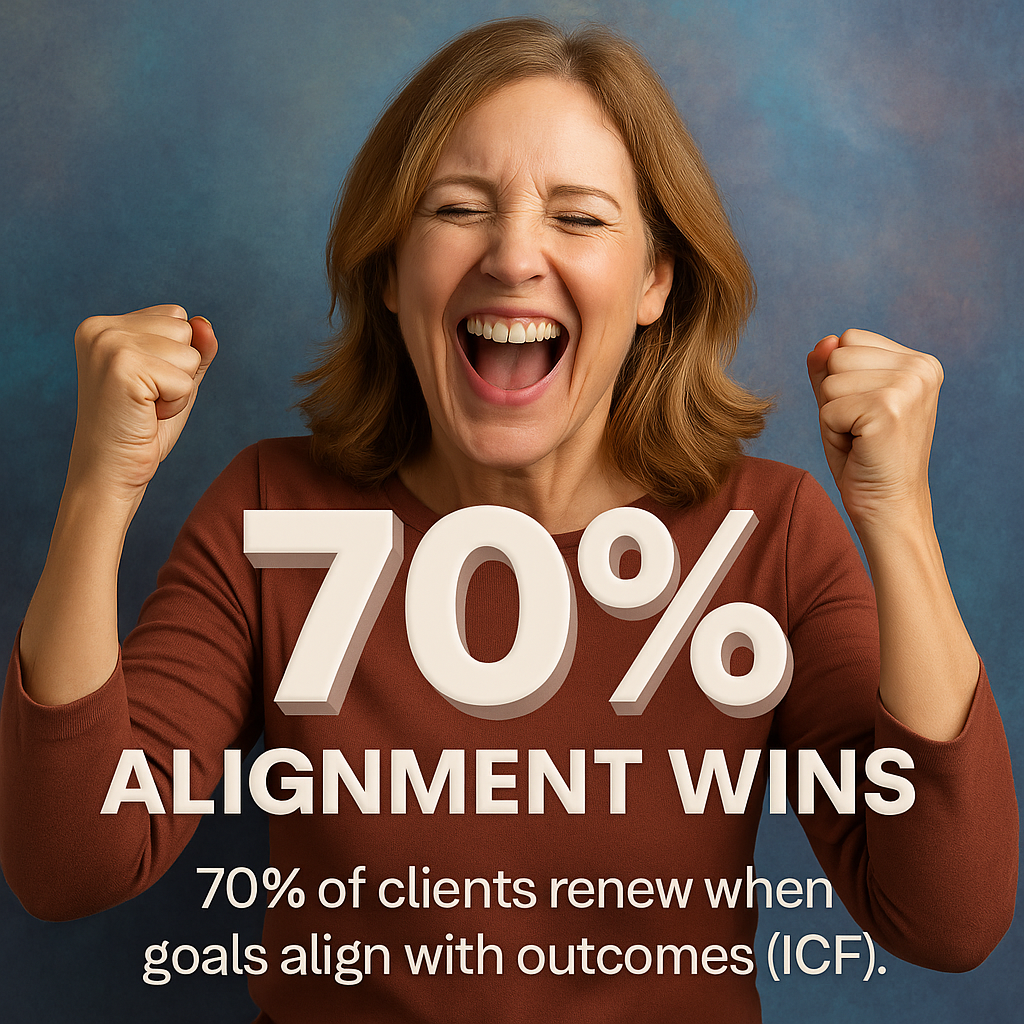 70% of clients renew when goals align with outcomes (ICF).