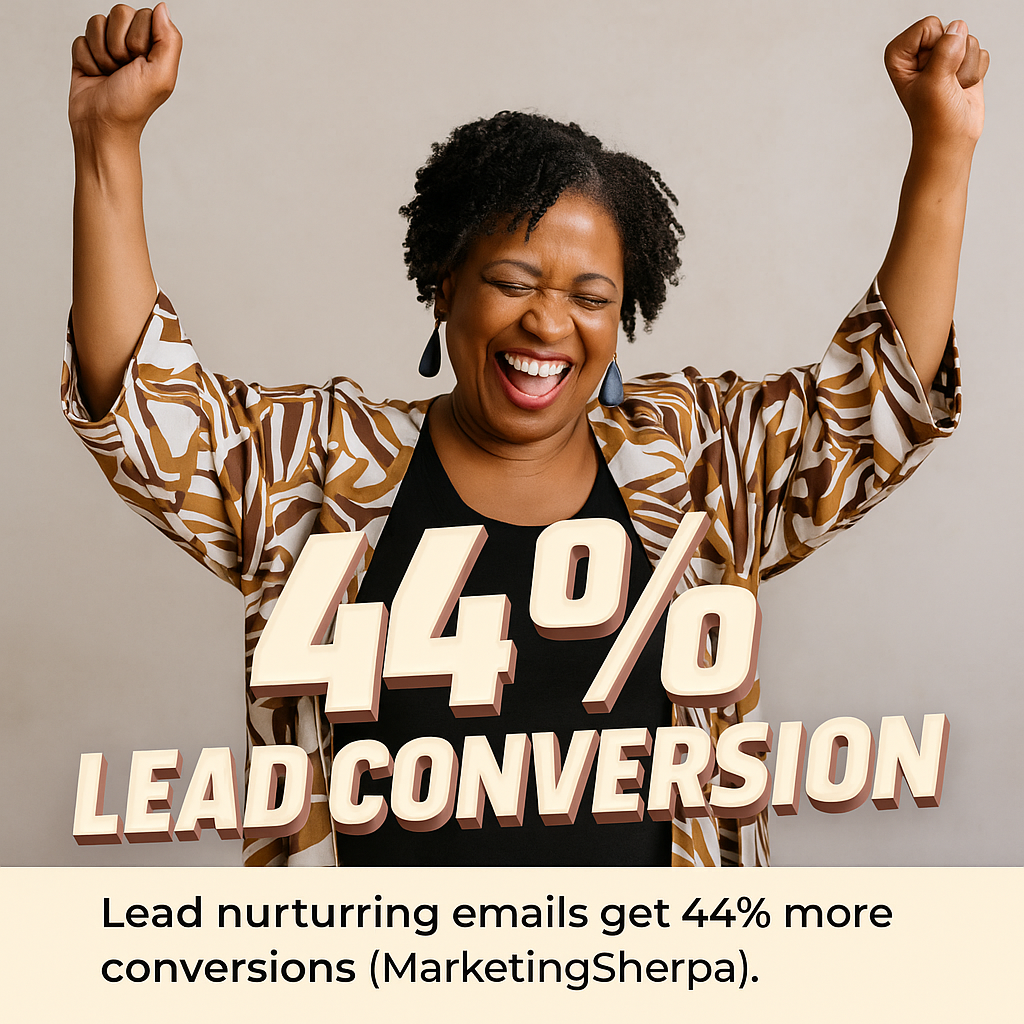 - 44% Lead Conversion – Lead nurturing emails get 44% more conversions (MarketingSherpa).